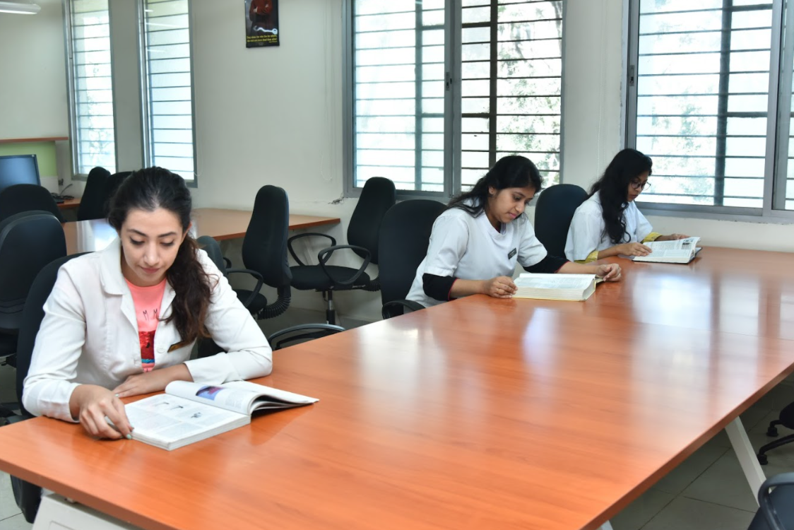 It is situated on the third floor and occupies a total area of 4545 square feet with separate reading areas for under graduate and post graduate students and a seating capacity of 200 and a separate internet section.